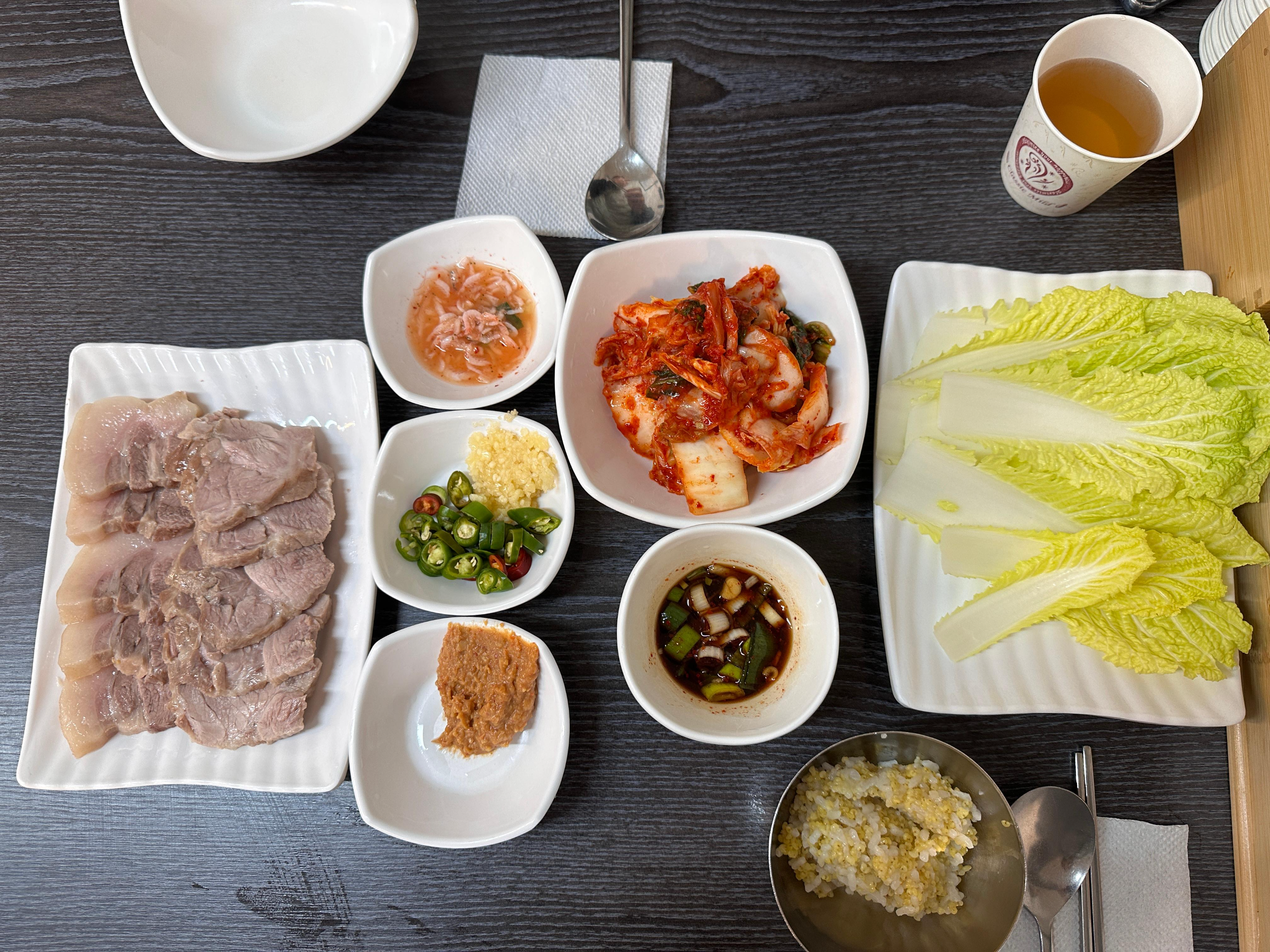 그러니 먹고 나서도, 입이 짜다고 물이 찾아지지 않는다. 나는 이모카세집에서 기분 좋은 수육을 먹었다.