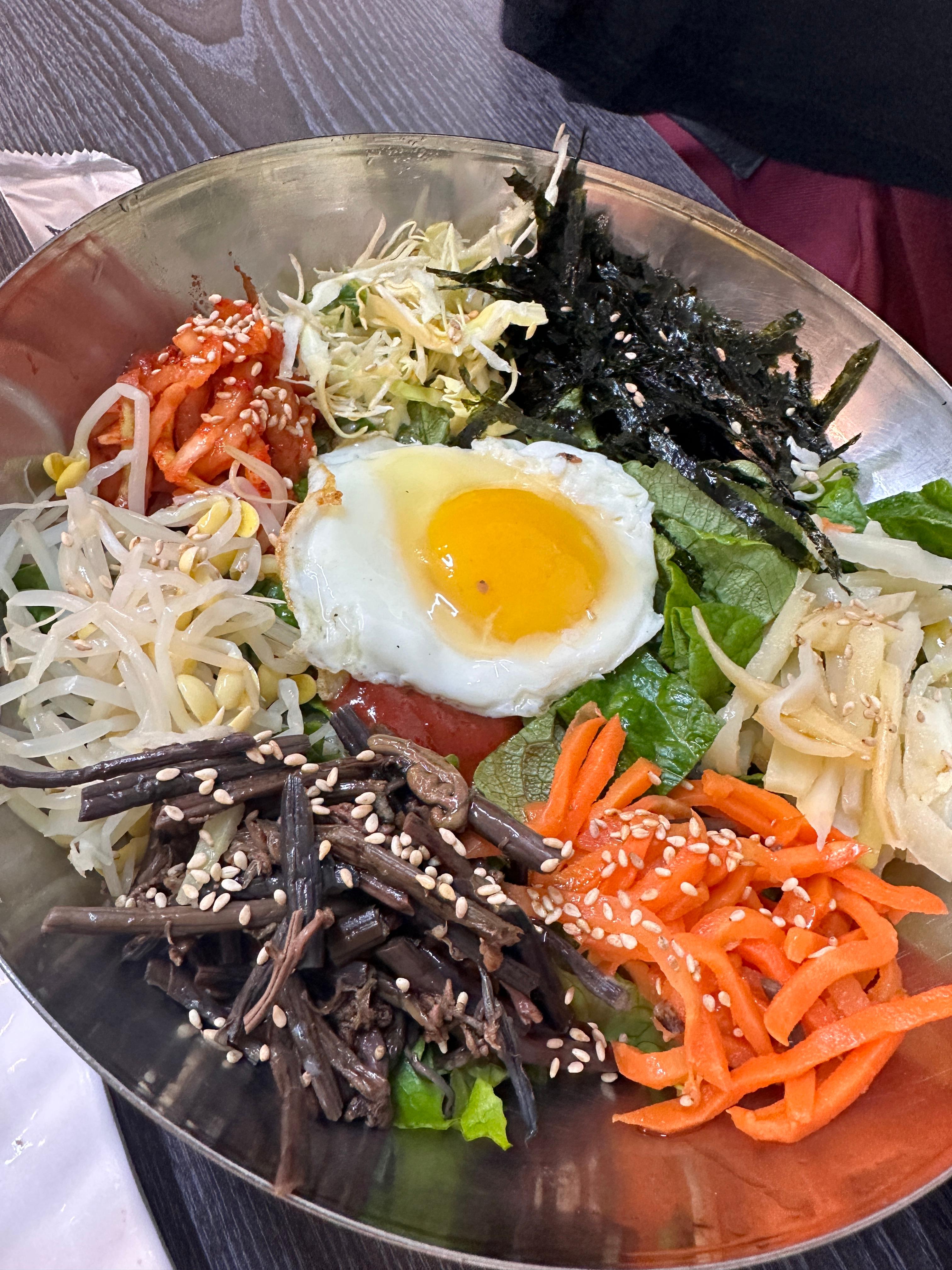 수육 한 입 먹으니 비빔밥이 나왔다. 올려진 나물 먼저 먹어보니,  간이 세지 않고 맛이다.