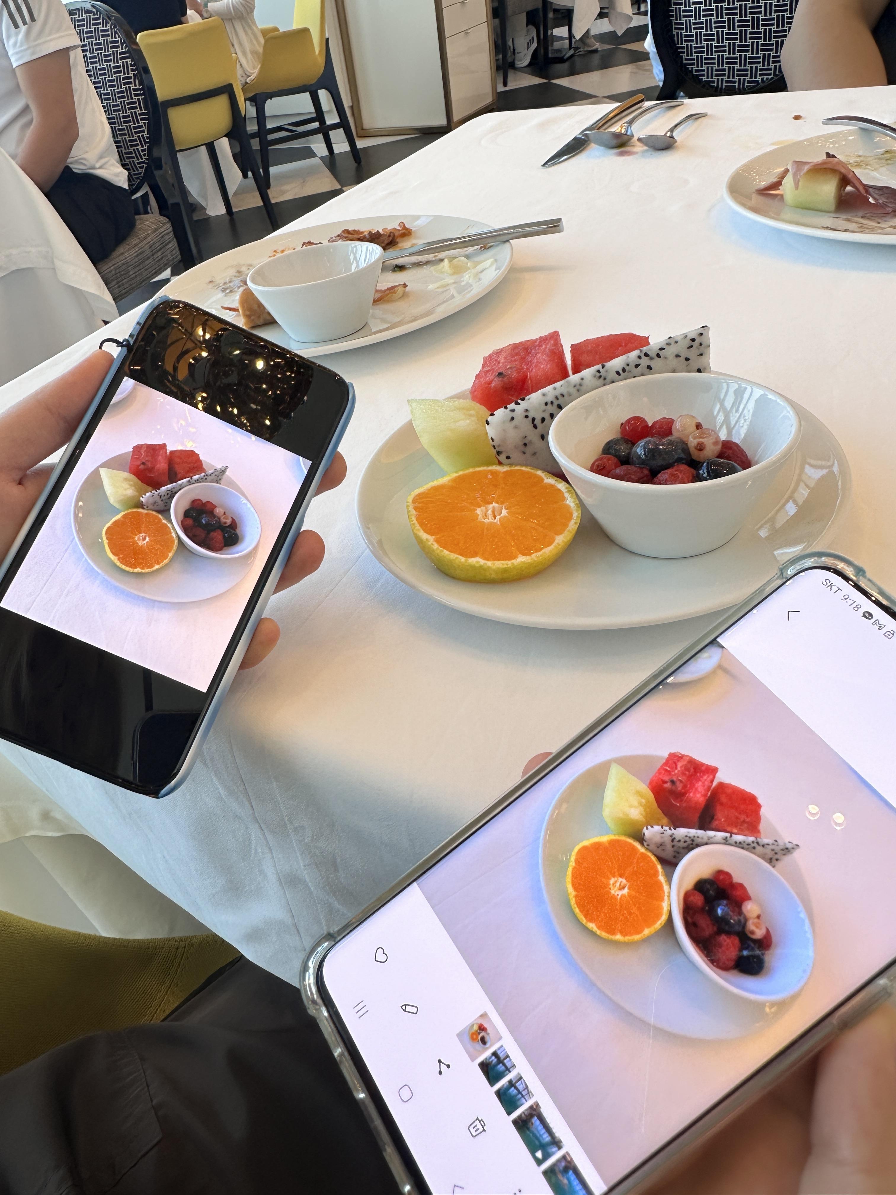 2차 조식 뷔페 - 가장 뷰가 좋은 곳에 위치한 조식 장소. 나는 뷔페 가면 시간 압박과 돈 아까우니 많이 먹자 위주였는데, 이번엔 좀 새로웠다. 요즘 다이어트 중이기도 하고, 나이도드니 많이 먹고 힘들어하는 내 모습이 싫어서. 천천히 먹자 했는데. 시작시간에 들어가서 종료시간까지 찬찬히 먹을 거 다 먹고 왔는데도 부담스럽지 않았다. 음식들이 맛은 기본이고 예쁘기도 해서 먹을 맛이 난다. 샐러드와 과일이 신성하고 다양하다. 아침부터 주는 장어구이는 너무 좋죠. 들락날락하던 아이들과 온전히 누리며 식사했던 시간.
