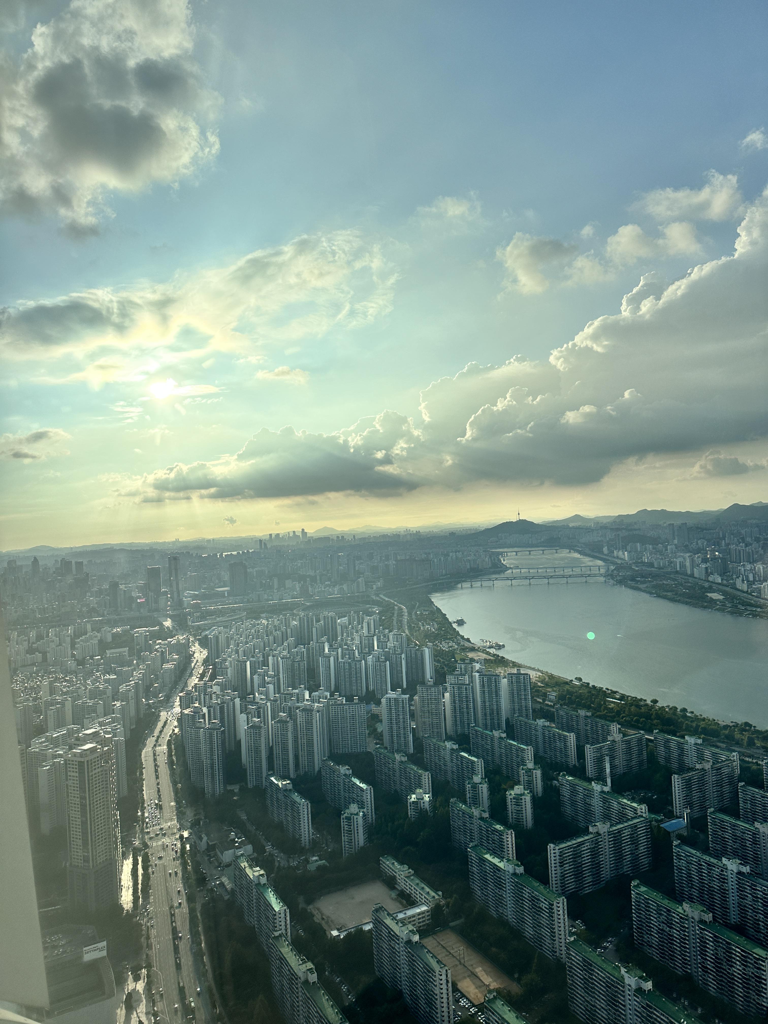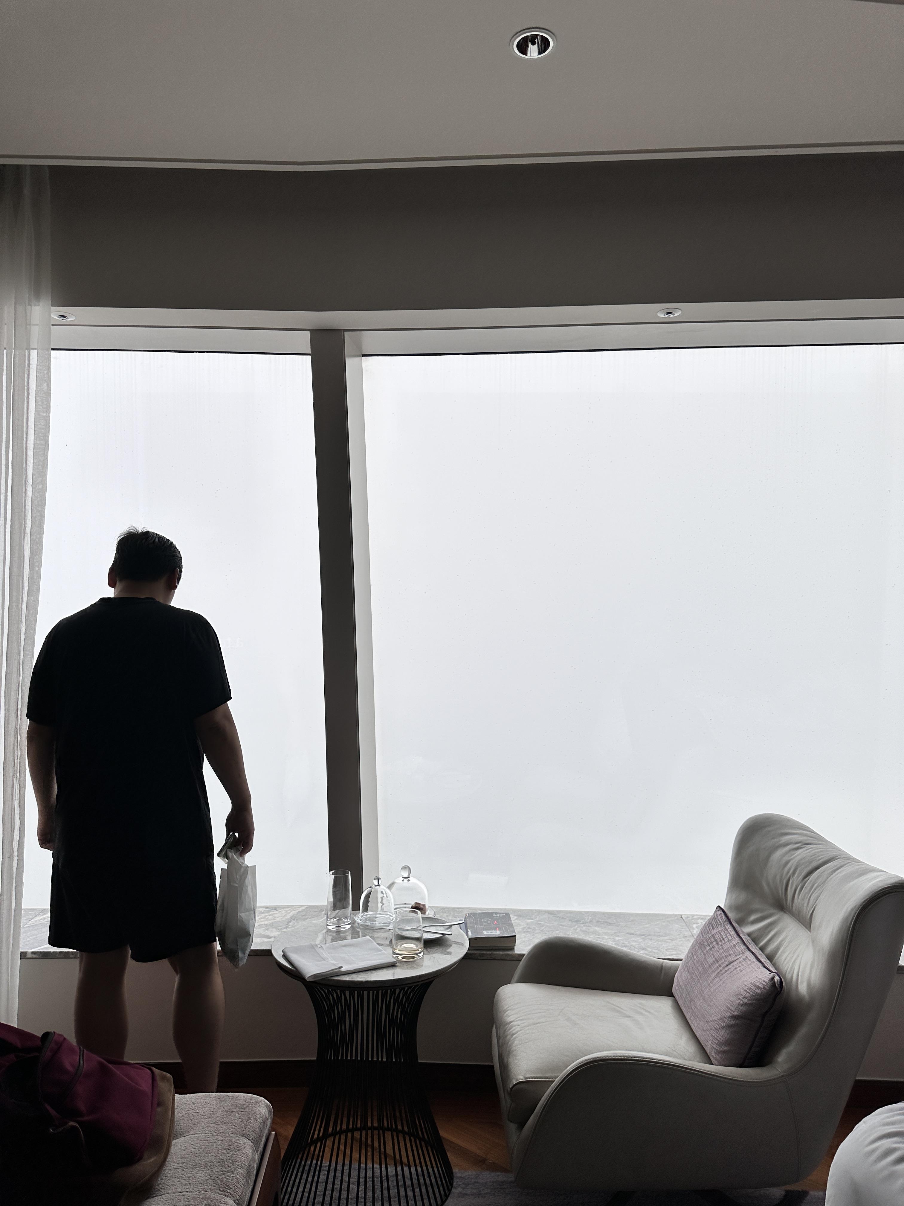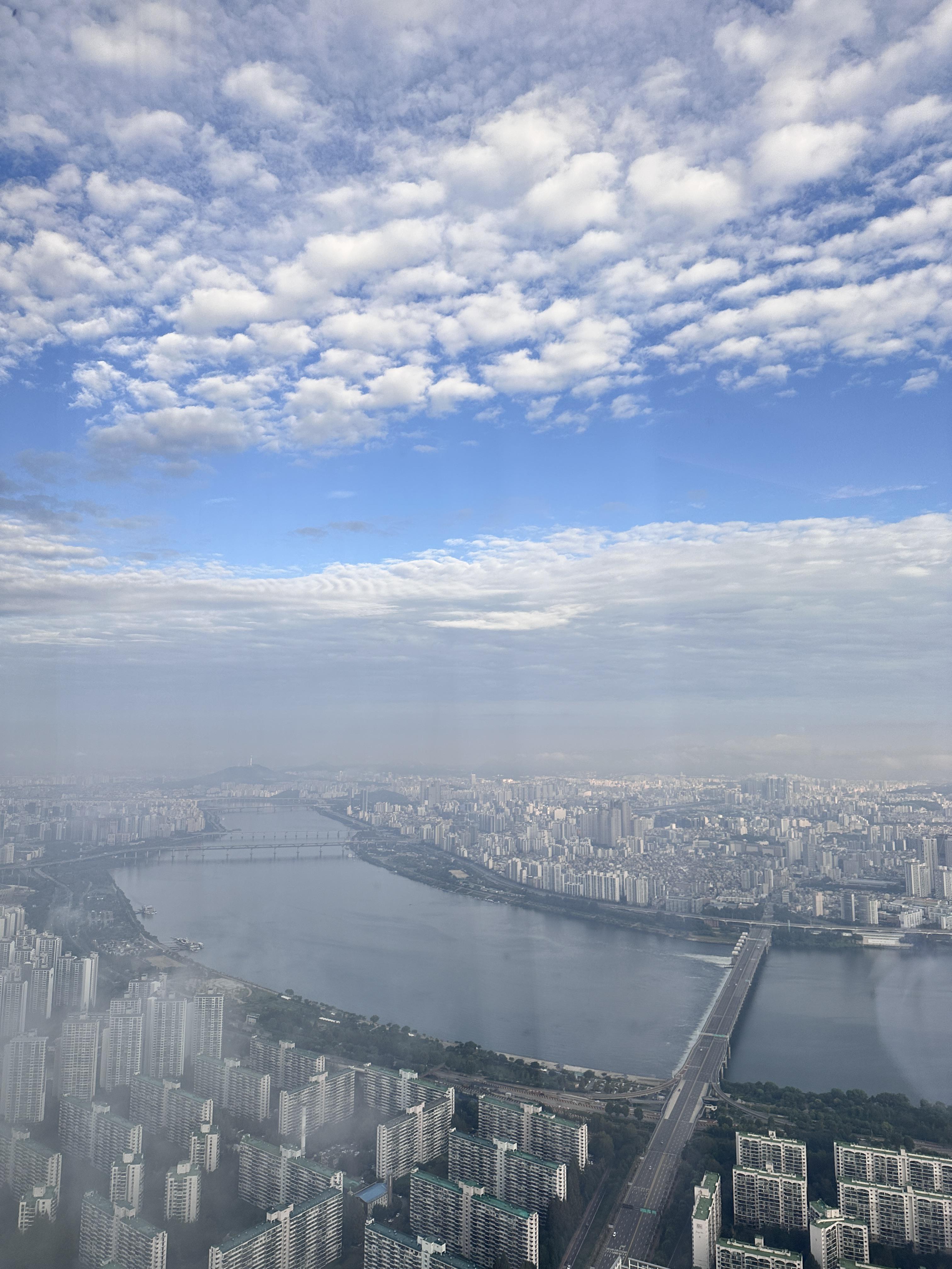 가장 멋진 뷰를 보러 갈 때는 날씨라는 행운이 따라줘야 하는데, 첫날은 안개가 껴서 밖이 창문 밖이 회색으로 여기가 어딘지 모르겠는 상황. 안개는 점차 걷히고 한강을 좌우로 볼 수 있었음. 일단 뷰는 내 맘대로 할 수 있는 것도 아니고, 호텔에서 만들어 줄 수 있는 것도 아니니 마음을 내려놓아야 호텔에 있는 시간이 행복하다.