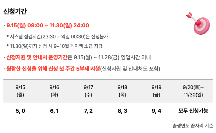 | 소비 조건 | 2024년 월평균 대비 9~11월 증가분의 20% | 카드사별 세부 기준 상이 |